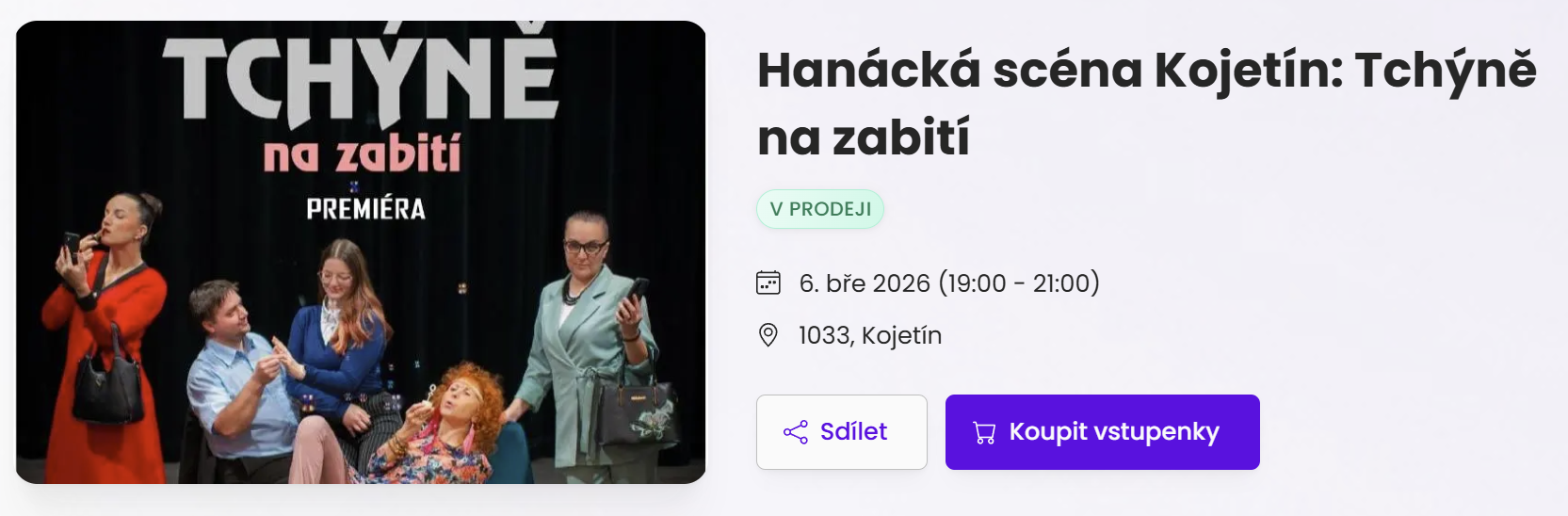 V týdnu od 18. do 22. března 2026 bude Kojetín hostitelským městem postupové přehlídky Divadelní Kojetín směrem na Divadelní Piknik Most. Zveme všechny milovníky divadla do kojetínské Sokolovny!!!