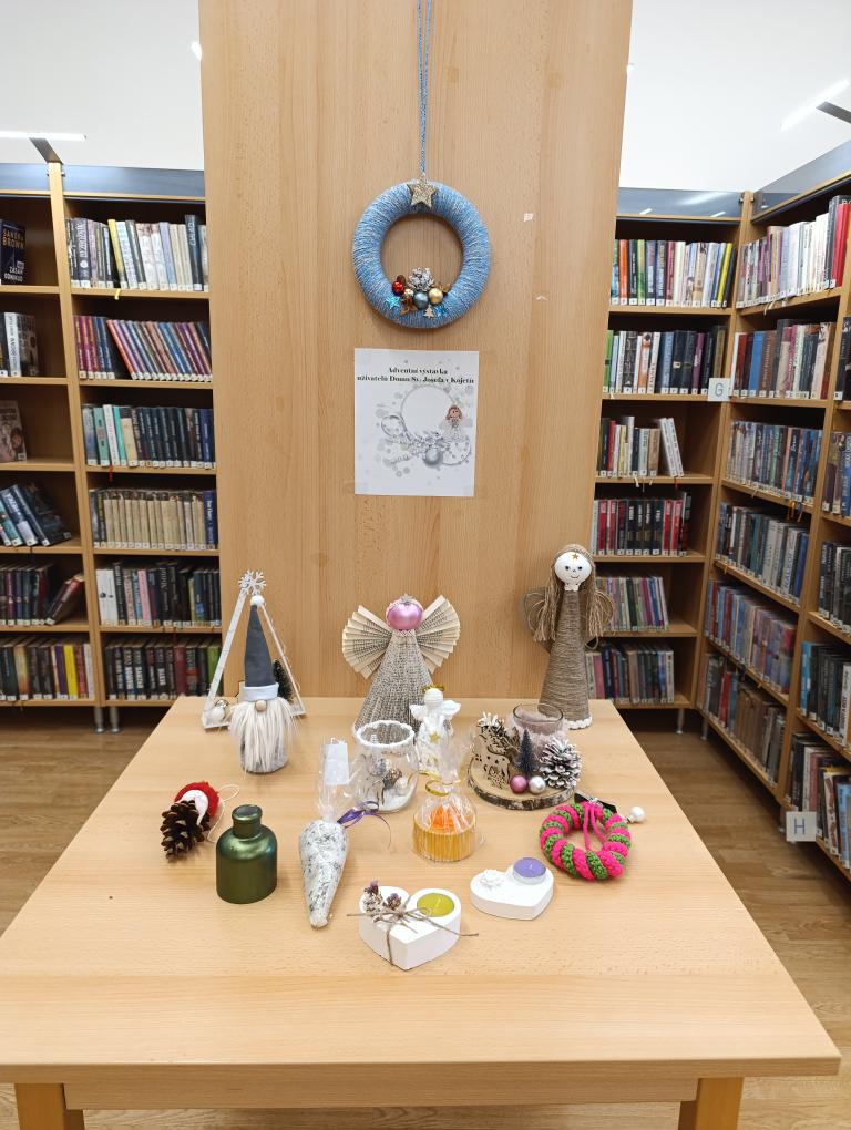 Výstavku adventních výrobků klientů Domu sv. Josefa bylo možné vidět v oddělení pro dospělé čtenáře ve dnech
