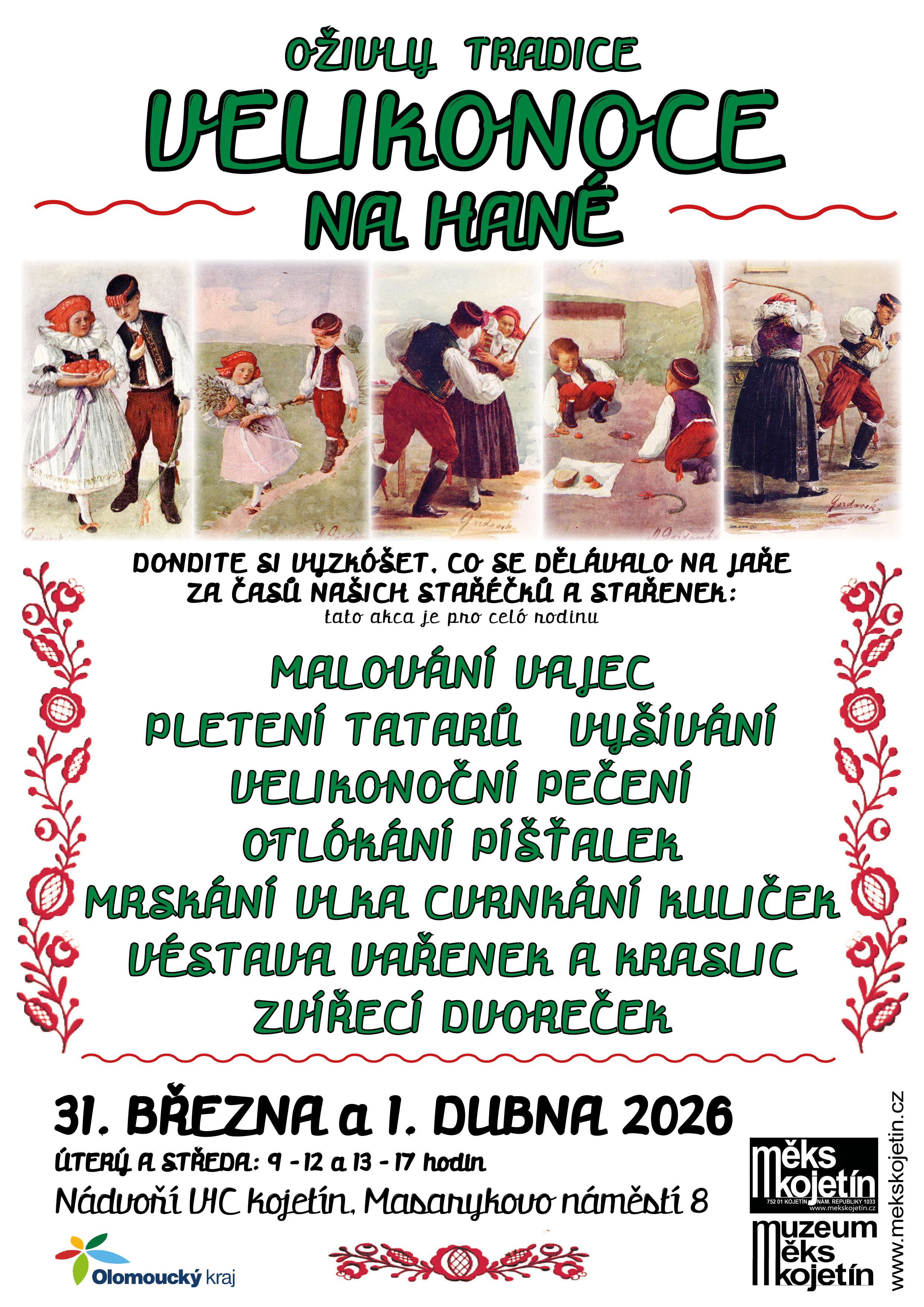 * v úterý a středu 31. března a 1. dubna 2026 si přindite na nádvoří VIC vyzkóšet, co se dělávalo na jaře za časů našich stařéčků a stařenek: