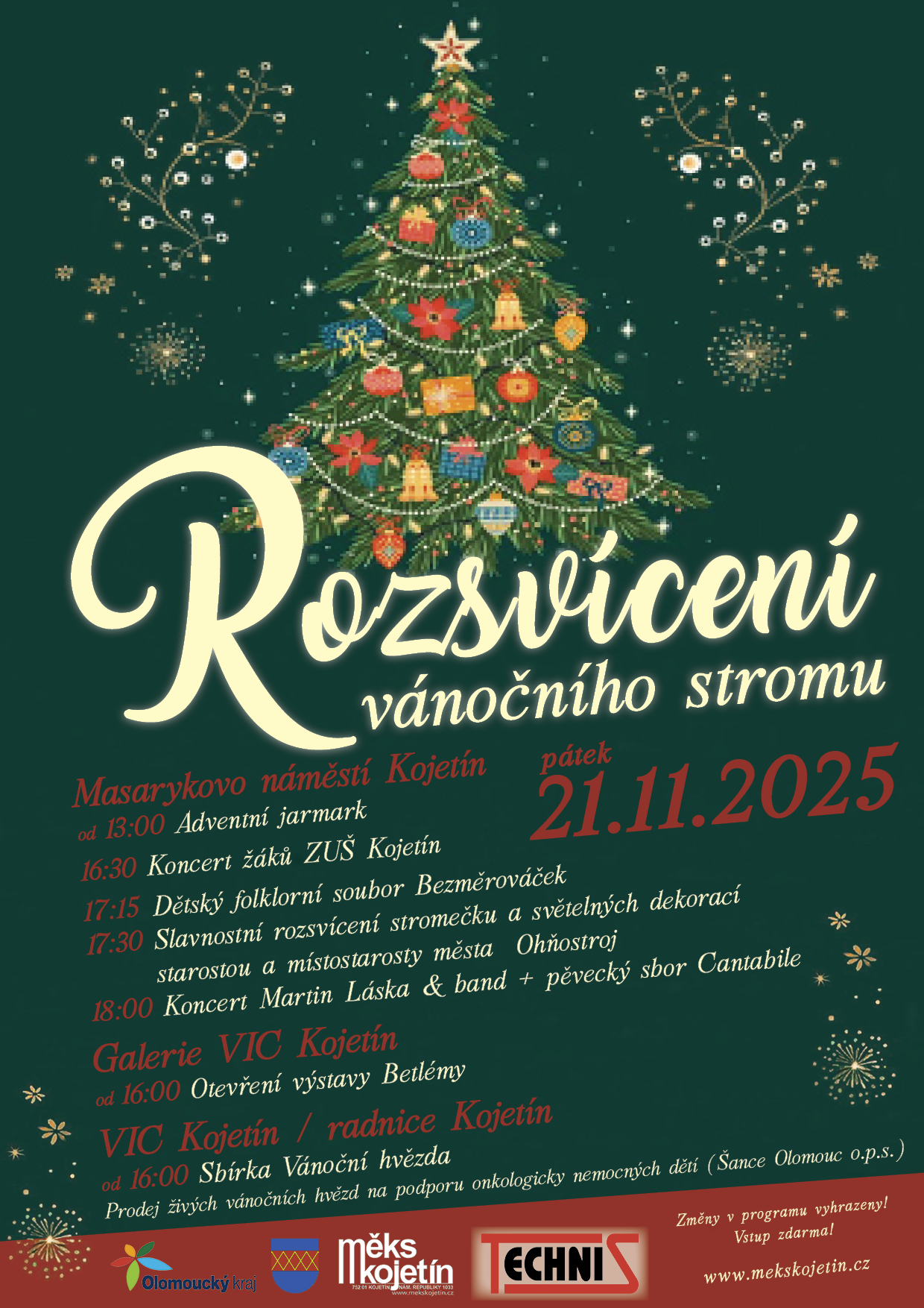 Slavnostní ROZSVÍCENÍ VÁNOČNÍHO STROMU na Masarykově náměstí s programem a adventním jarmarkem se letos bude konat v pátek 21. listopadu 2025...