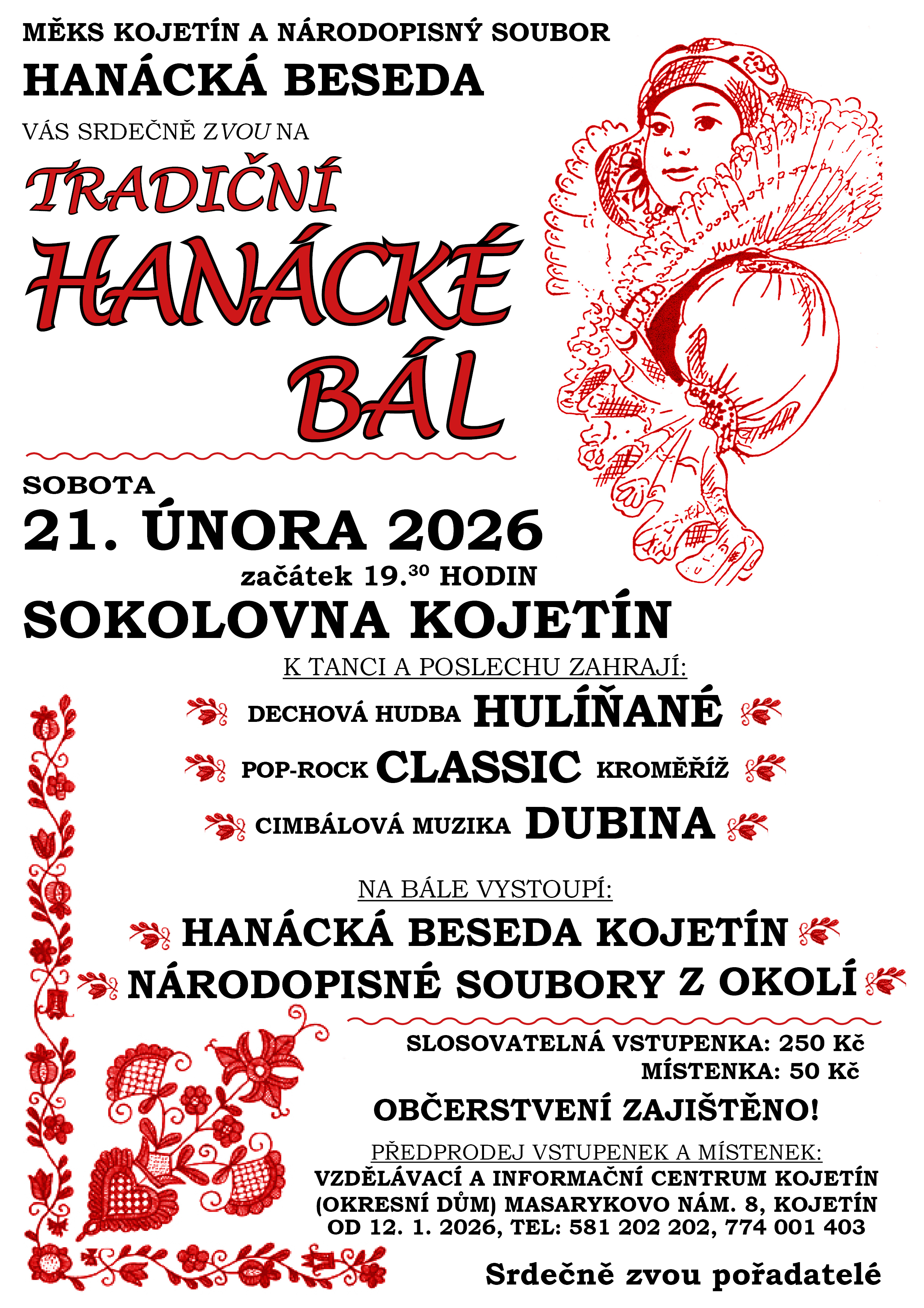 MěKS Kojetín a národopisný soubor Hanácká beseda vás srdečně zvou na tradiční HANÁCKÉ BÁL,