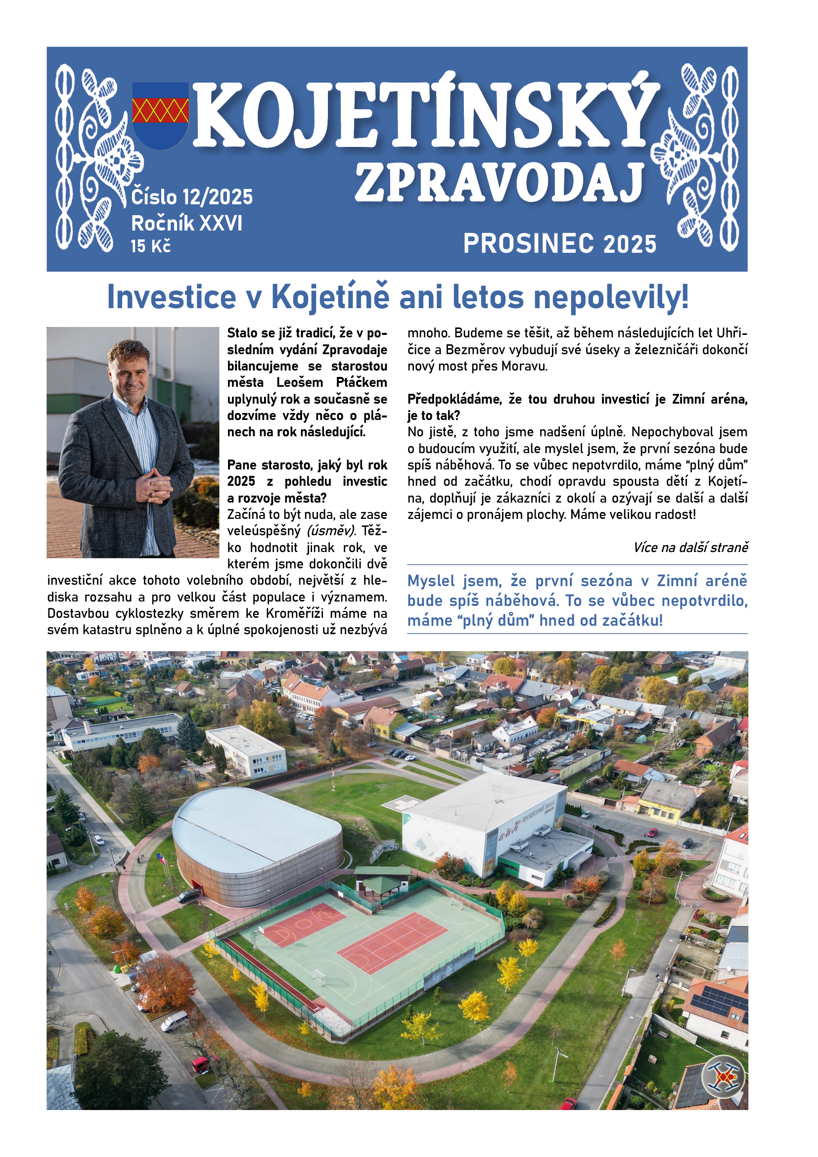 Zveřejňujeme číslo 12/2025 Kojetínského zpravodaje:
