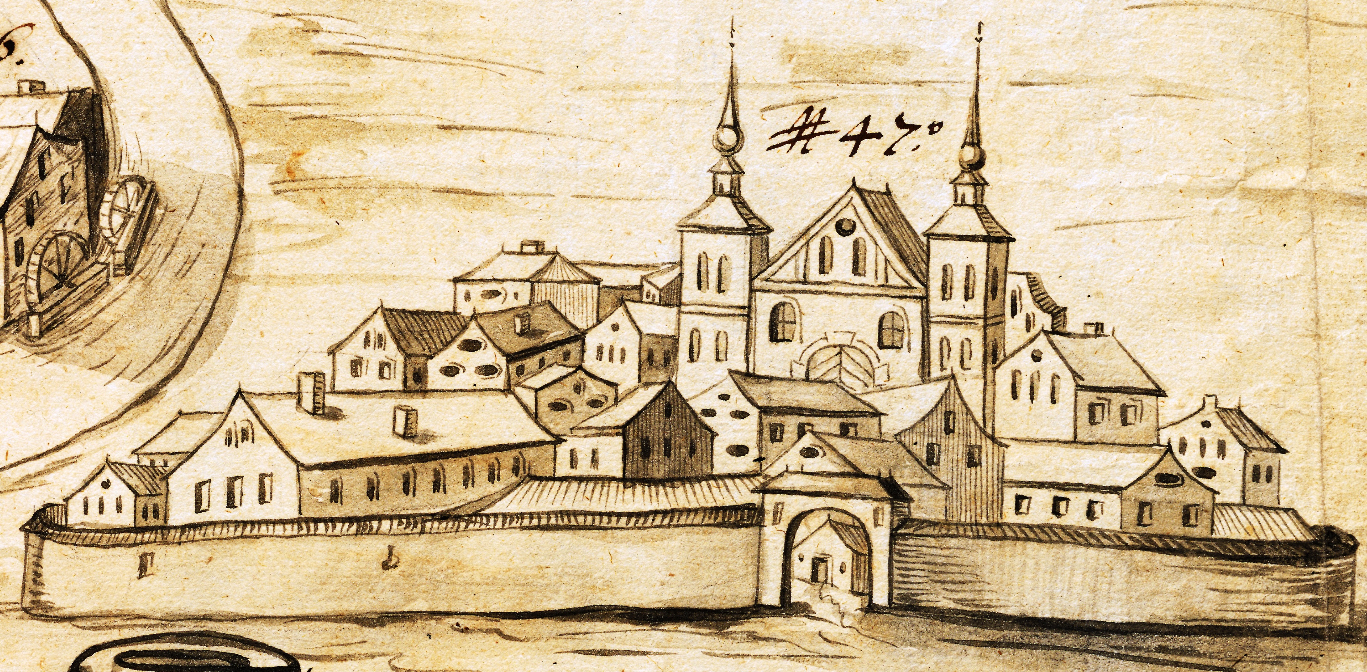 Při porovnání tvaru střech z nákresu z roku 1726 s pohledem na město z roku 1727 je patrný značný rozdíl. A veduta z „Vodní mapy“ z počátku 18. století, ukazuje u zřejmě Vyškovské brány ještě větší rozdíl.