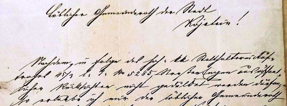 Přesuňme se však do roku 1875. Koncem měsíce dubna tohoto roku obdržela „Löbliche Gemeinderath der Stadt Kojetein!“ – Slavná obecní rada města Kojetína, dopis z Oddělení zemského stavebního úřadu v Uherském Hradišti v následující věci, kdy z Vyškovské brány zůstaly pouze dva pilíře (upravený překlad):