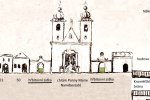 Obr. Situační nákres na okolí farního kostela se zídkami ohraničujícími hřbitov z roku 1727.