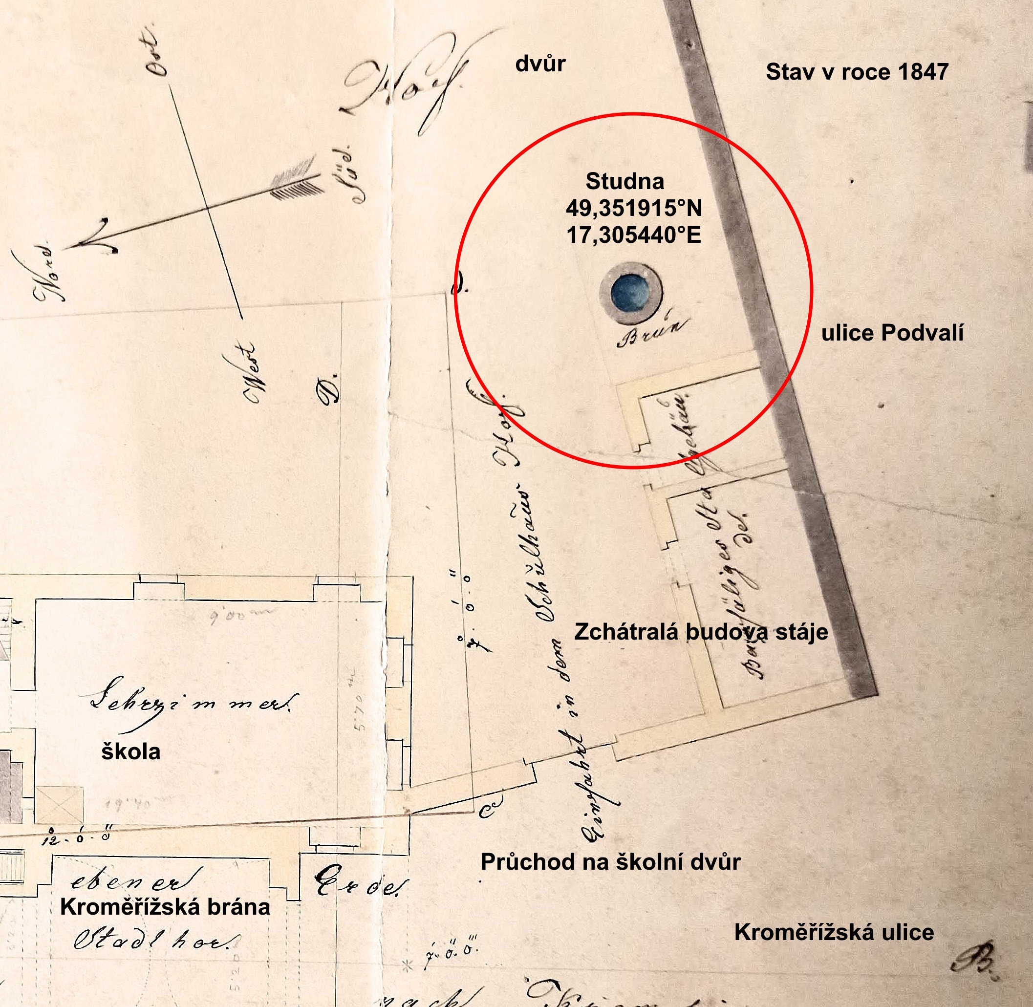 Současná studna na dvoře Mateřské školy sv. Josefa není výše uvedenou studnou. Od současné hradební zdi je tato studna vzdálena necelých 18 metrů a je umístěna u hranice pozemku školy a dnešní zahrady kolem kostela, dříve hřbitova.