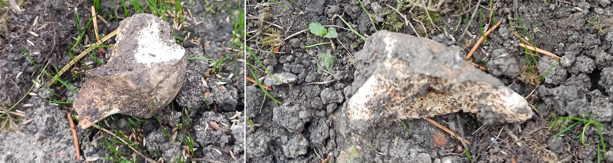 Obr. Úlomky kostí na hřbitově kolem kostela.