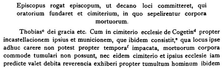 Obr. Úvod listiny pražského biskupa Tobiáše adresovaný olomouckému biskupovi Dětřichovi.