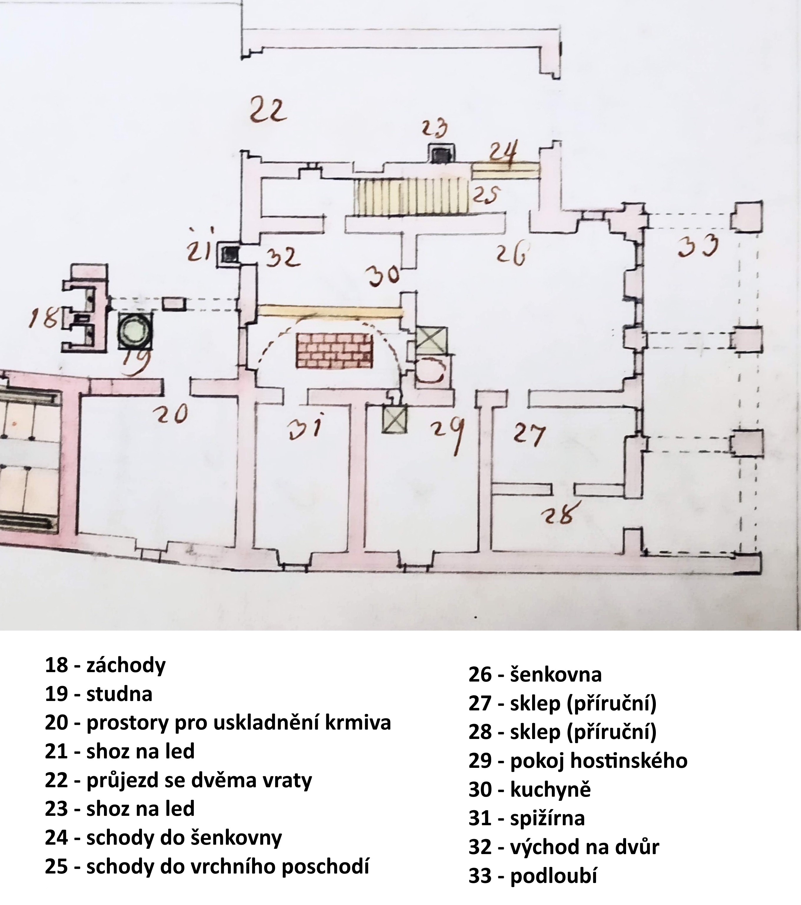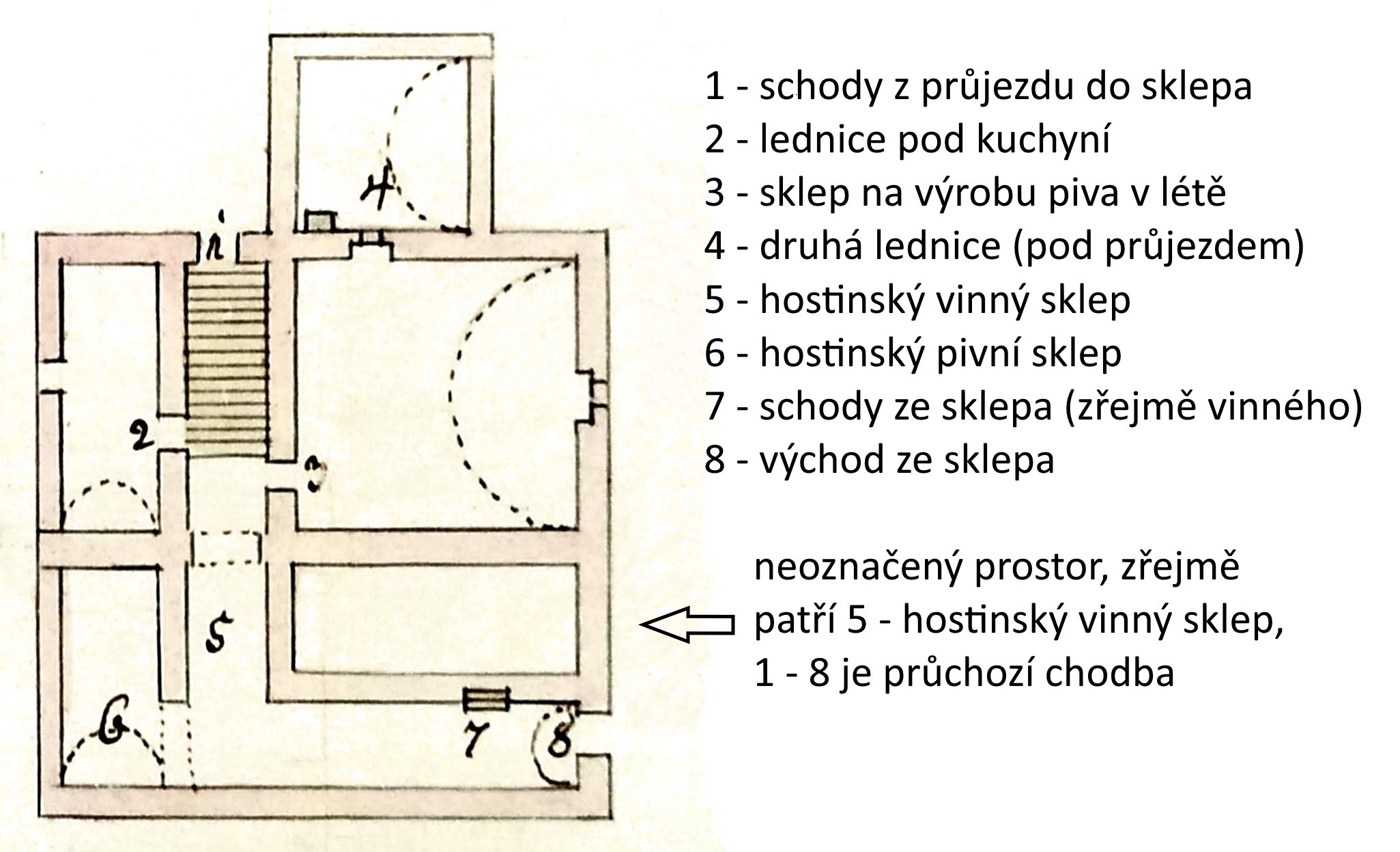 Obr. Nákres a popis sklepení hostince.
