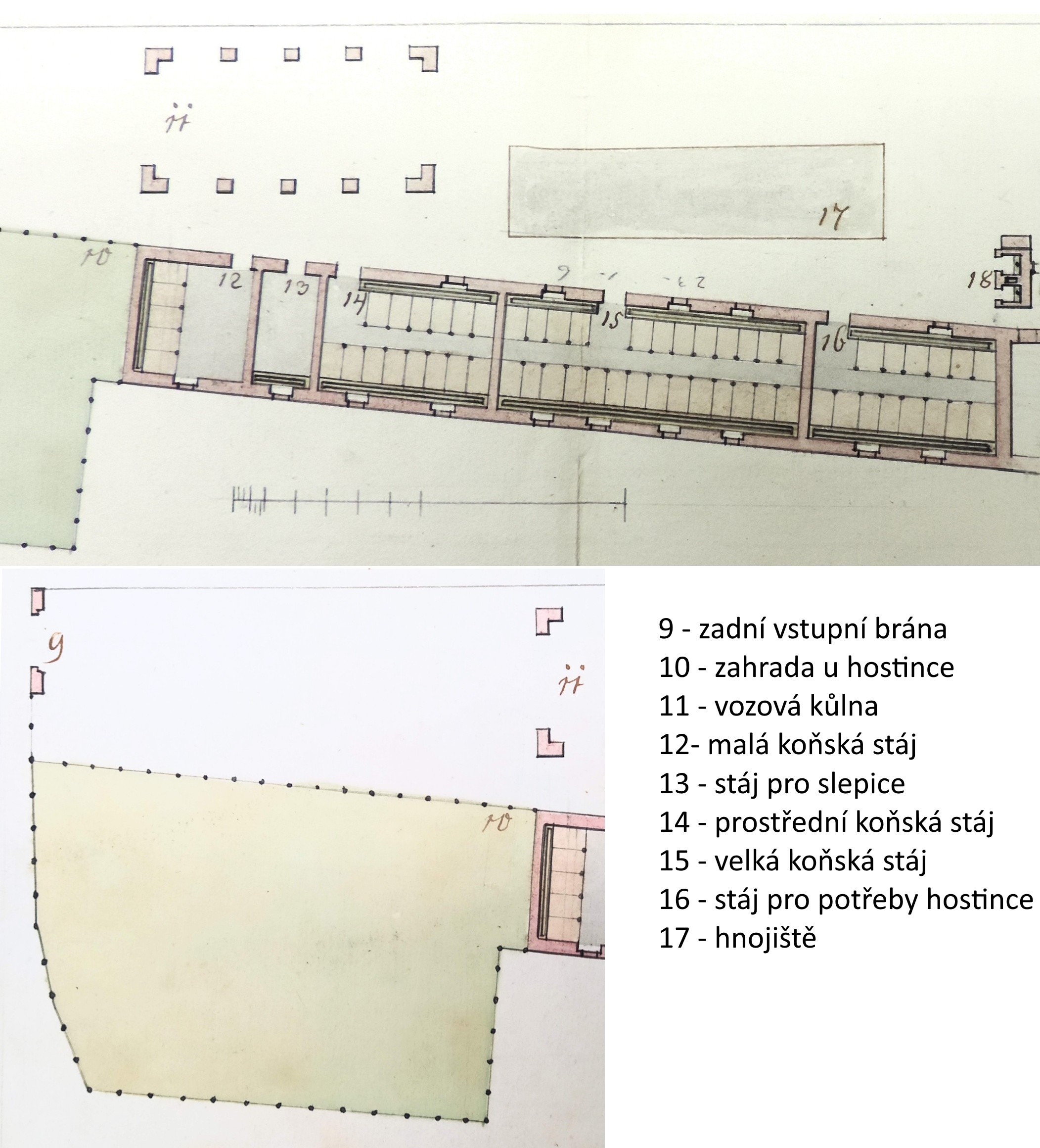Obr. Nákres budovy č. 8 s panským zájezdním hostincem v Kojetíně z období kolem roku 1817.