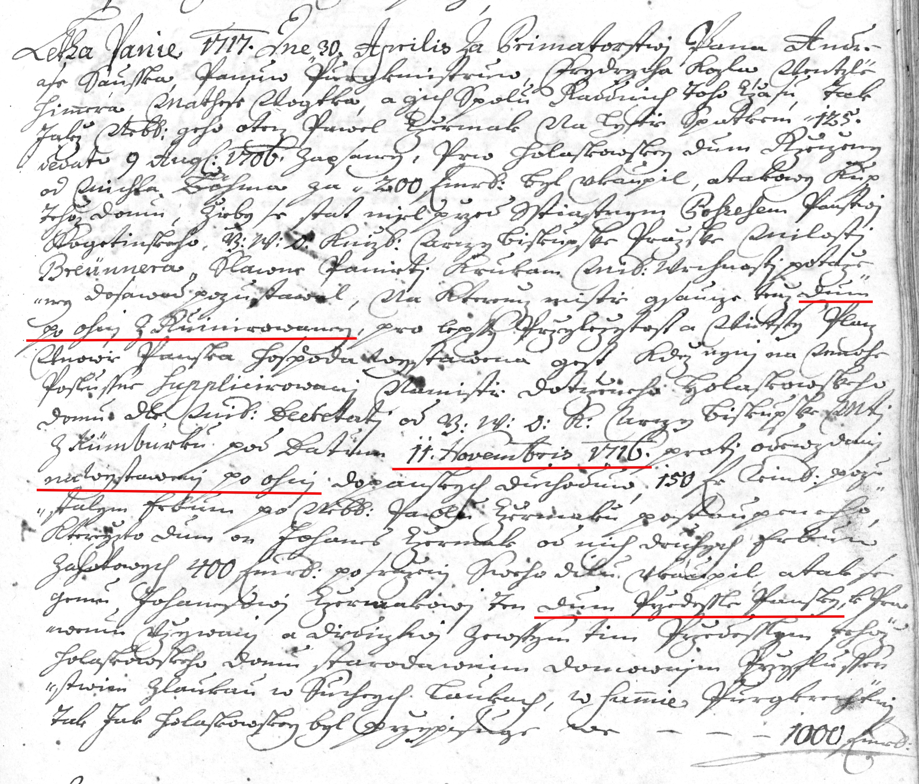 Zápis se retrospektivně vrací k událostem v roce 1716, o kterých je zapsáno: „…na kteremž mistie gsaucze tenž Dum po ohni Zruinirowany, pro lepssi Przyležytost a Wietssy Placz w nowie Panska Hospoda wystawena gest, kdež nyni na mnohe Poslussne Supplicirowani Na mistie dotczeneho Holaskowskeho Domu dle Mil.(ostivého) Decreterti od G.(eho) W.(ysosti) D.(omini) K.(nižieczi) Arczy Biskupske M(ilos)ti z Khünburku pod Datum 11. Novembris 1716 proti odewzdani na wystaweni po ohni do panskych duchoduw 150 Rm, pozustalym erbum po neb. Pawlu Czermaku postaupeneho, kteryžto Dum On Johanes Czermak od nich druhych erbuw za Hotowych 400 Rm po sraženi Sweho dilu ukaupil a tak se gemu Johanesovi Czermakowi ten Dum Przedessle Pansky, k prawemu Užiwani a Diedicztwi ze wssim tim Przedesslym tehož Holaskowskeho Domu Starodawnim domownim Przyslussenstwim z laukau w Suchych Laukach, w Summie Purgkrechtni, Tak Jak Holaskowskey byl przypisuge we……..1000 Rmr:“.