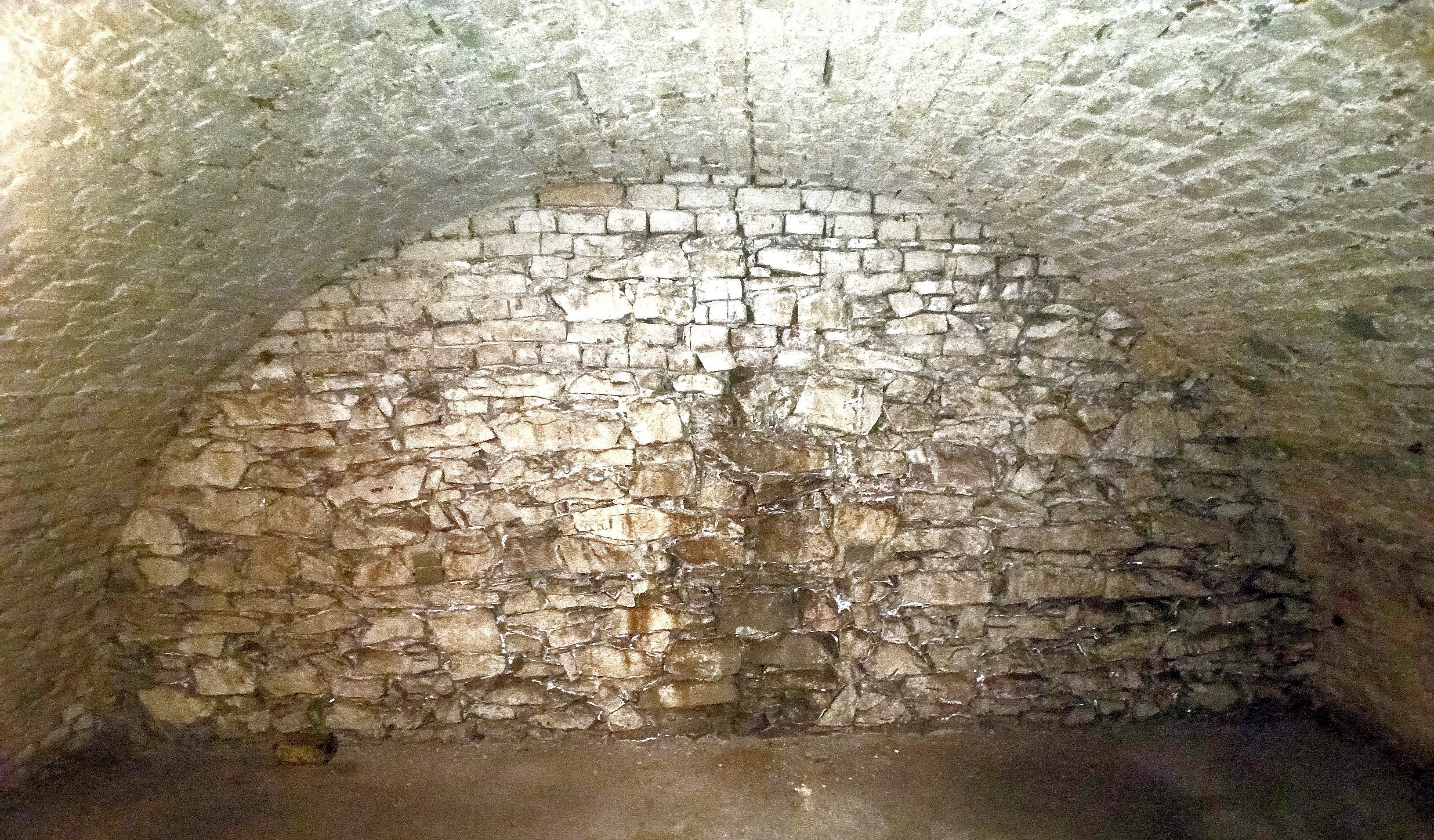 Obr. Pohled na sklepní zeď, uzavírající sklepení ze severní strany (směrem do dvora).