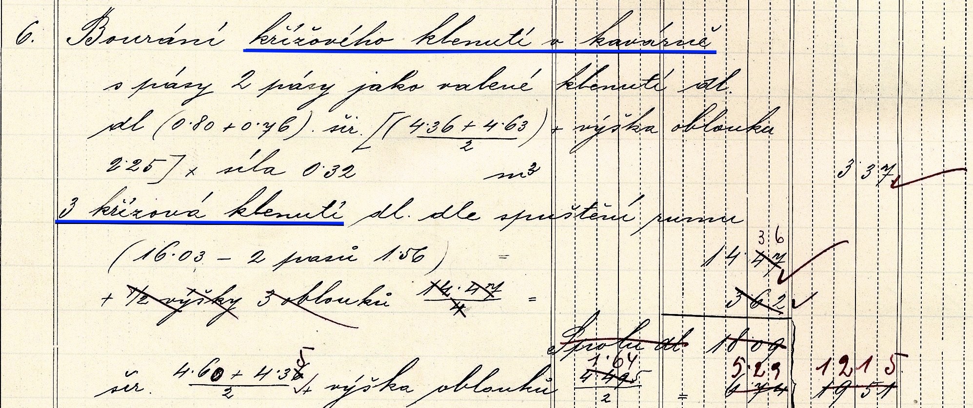 Obr. Zápis o bourání „křížového klenutí“ v kavárně.
